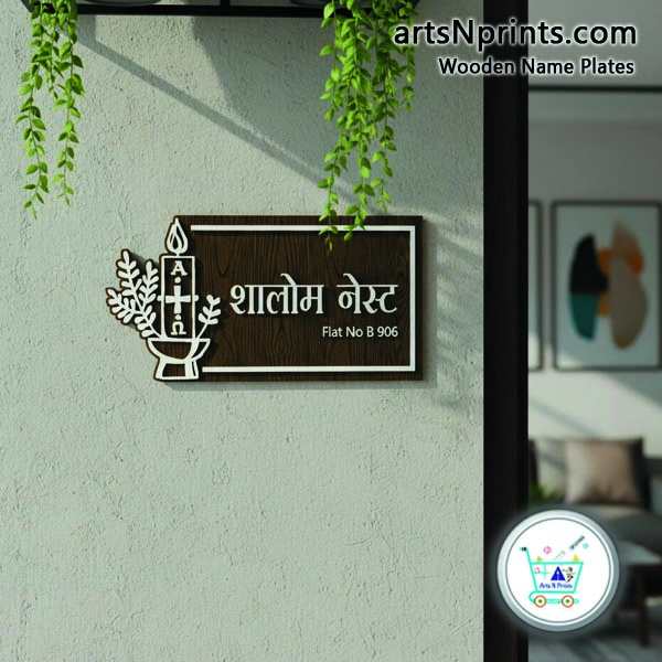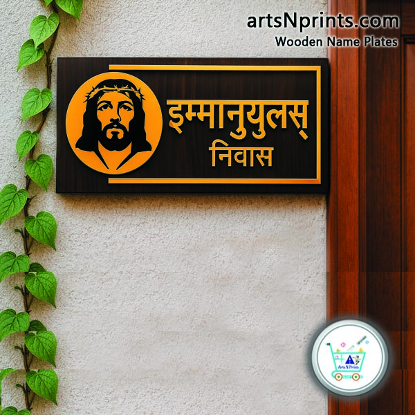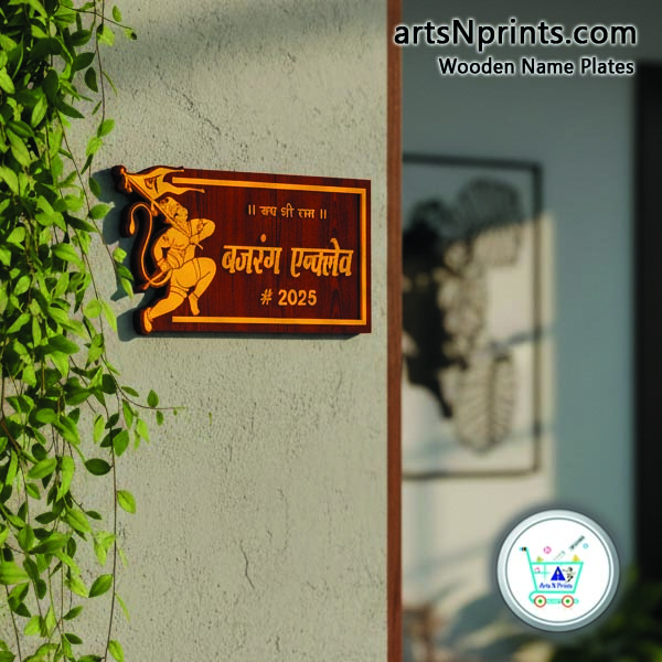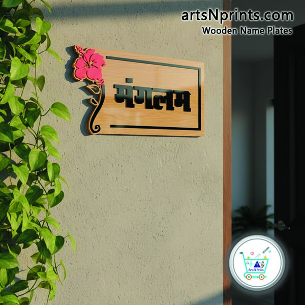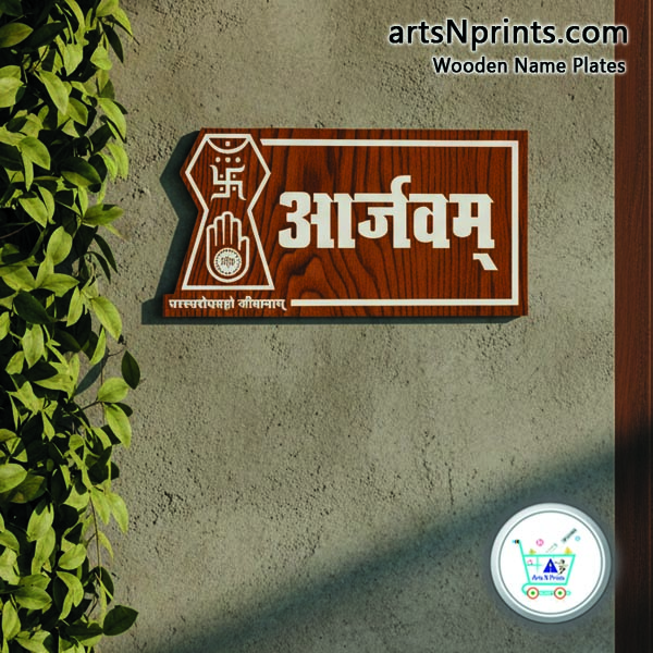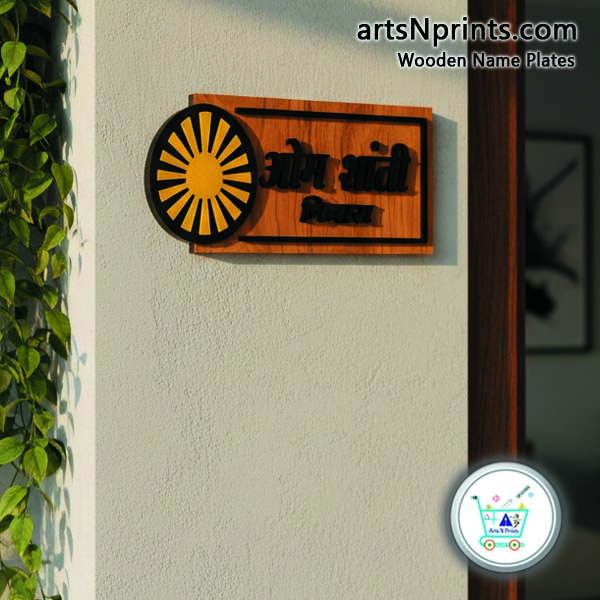 Our exquisite wooden name plates combine a premium MDF wooden base with vibrant acrylic laser-cut and paste fonts, delivering a striking blend of natural warmth and modern precision. The MDF wood foundation ensures durability and a touch of timeless elegance, while the laser-cut acrylic letters offer sharp contours, vivid colours, and a crisp, professional finish. Each plate is handcrafted by skilled artisans at artsNprints.com, following strict SOPs to guarantee perfect alignment, zero spelling errors, and smooth edges. Ideal for homes, flats or villas across India, this Hindi-font name plate pairs traditional script with contemporary materials. We ensure every order includes pre-production drawing approval, quality checks, and reliable door-delivery.