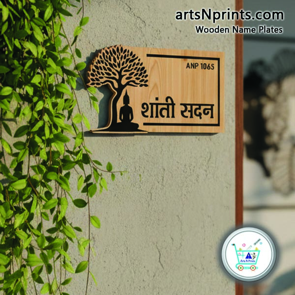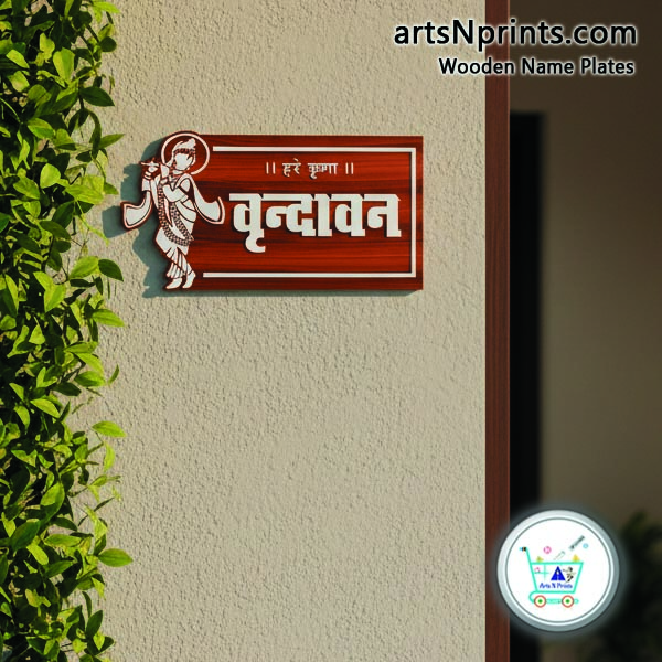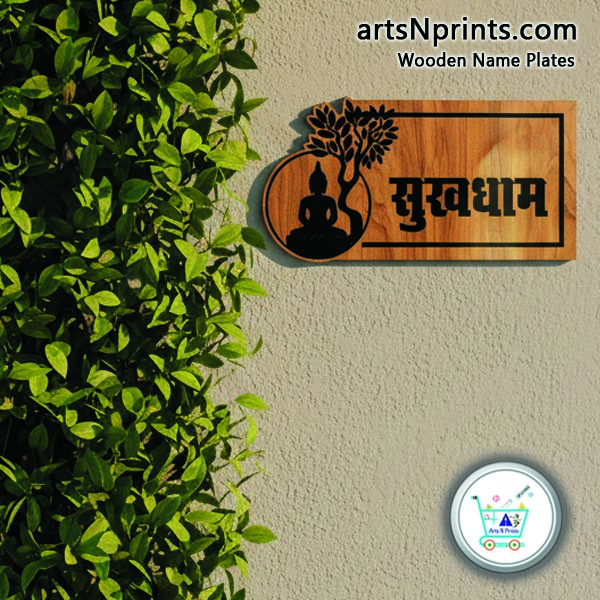 Hindi Font Wooden House Name Plate Designs by artsNprints.com
