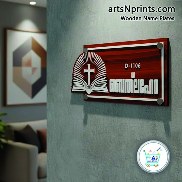 “Crafted in Malayalam elegance — premium wooden name plates with precision acrylic lettering, delivered across Kerala & India.”