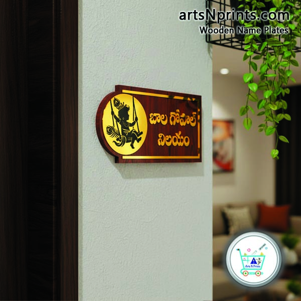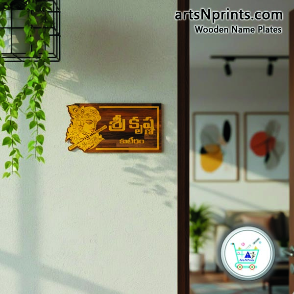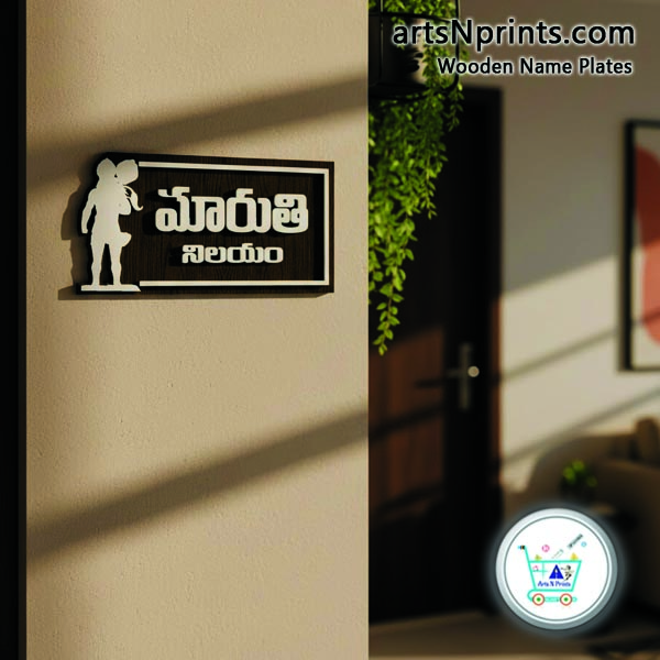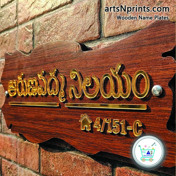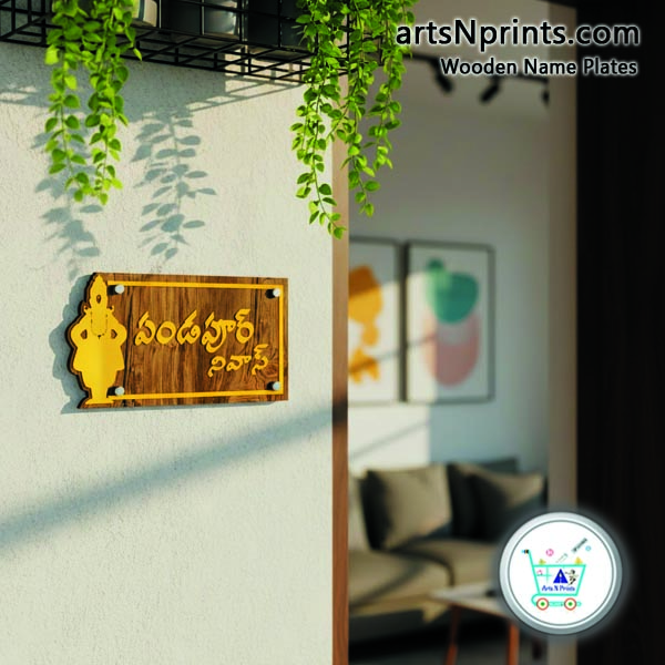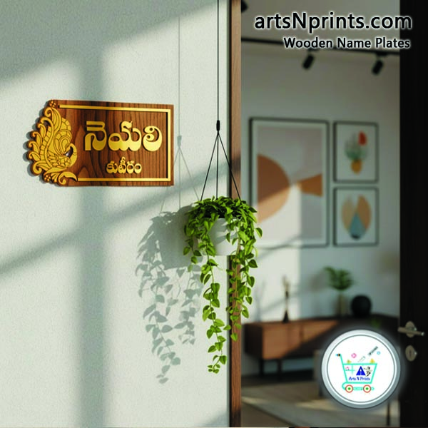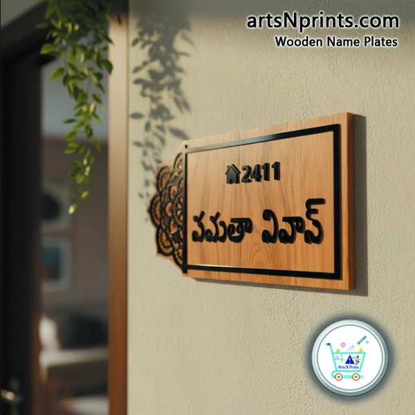 “Telugu font wooden name plate”, “Telugu name plate online”, “wooden name plate Telugu”. Telugu wooden name plate, Telugu font name board, acrylic letters on wood, Telugu house name plate online, handcrafted Telugu name plate, artsNprints Telugu plate