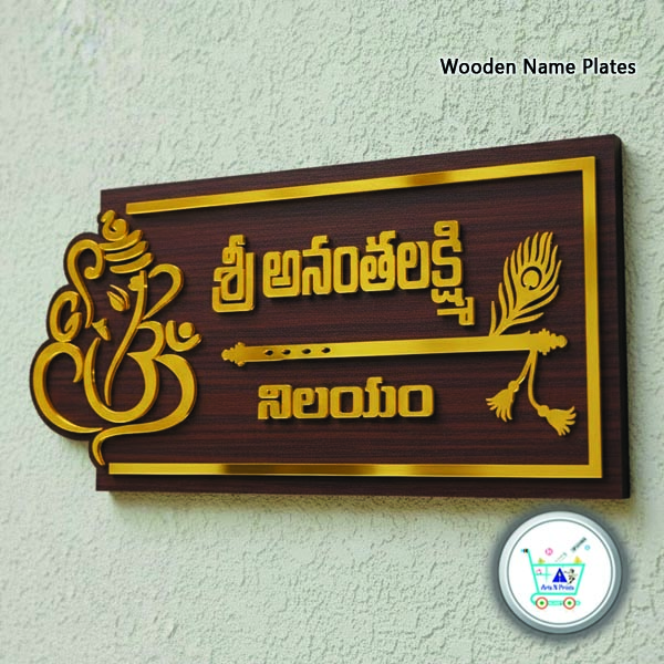 “laser cut acrylic letters”, “wooden base name board”, “Telugu house name plate”, “door delivery Andhra Pradesh Telangana”.